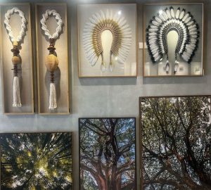 Composição que une um remo e um cocar pode resultar em uma obra de arte rica em simbolismo e cultura, trazendo a natureza e história para decoração.